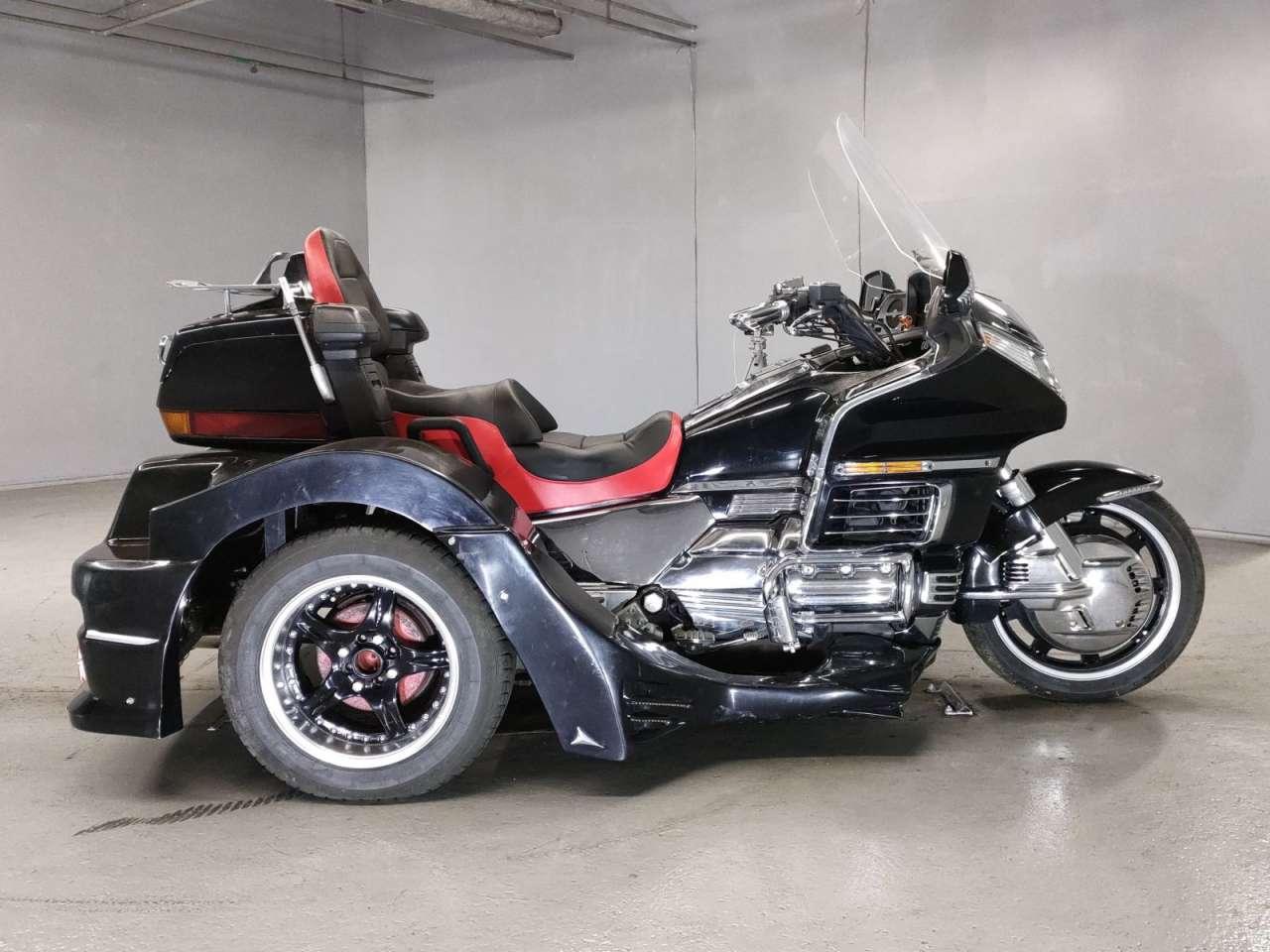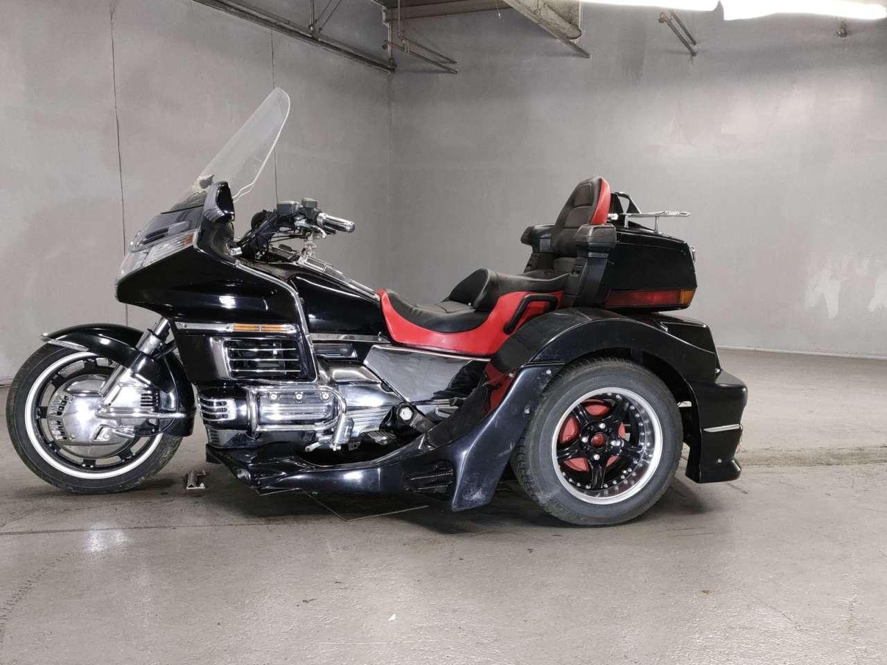 Трайк мотоцикл турист Honda GL1500 Gold Wing SE Trike рама SC22 модификация классика тип туристический год выпуска 1996. Двигатель 6-цилиндровый, 4-тактный, объем 1500 куб. см. (1520 cc) мощностью 97 л.с. Карбюратор, охлаждение жидкостное, электростартер, КПП 5 механика, привод кардан, пробег 43 060 км цвет черный. Оценки аукциона: общая оценка 3; двигатель C; передняя часть 3; внешний вид C; задняя часть 3; электроника 3; оценка рамы B. ЭСБКТС и ЭПТС есть. Без пробега РФ.